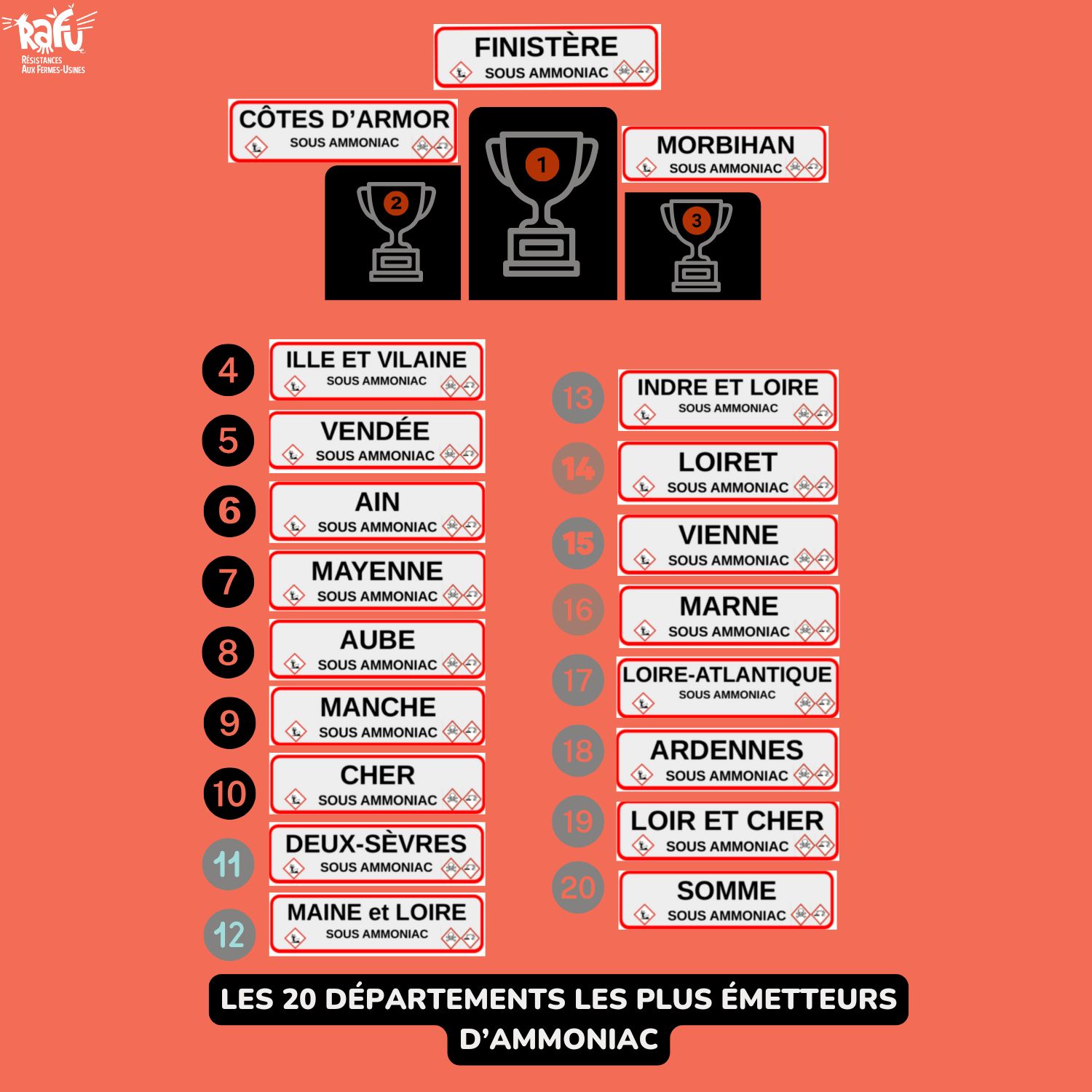 Ammonia: ranking of the 20 most ammonia-polluting departments in metropolitan France